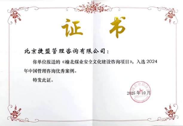 捷盟咨询凭借《陕煤集团榆北煤业安全文化建设案例》荣获2024年中国管理咨询优秀案例,这是捷盟咨询连续第十四年获此殊荣;